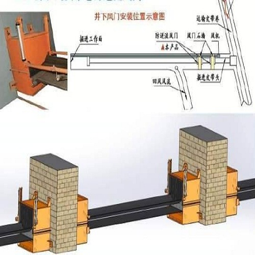 礦用防逆流風門裝置的擋風板有手動控制和遠程智能電控氣動控制兩種模式;擋風板有沿滑道上下垂直升降和沿旋轉軸旋轉到90度以便皮帶穿過輸送煤炭。垂直升降擋風板的礦用氣動防逆流裝置要合理設計氣缸的運行速度,防止礦用防逆流風門的擋風板兩邊不同步造成卡頓。